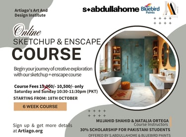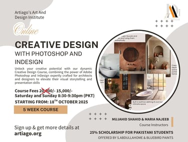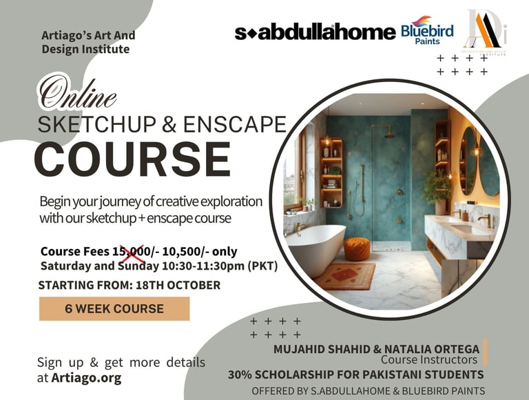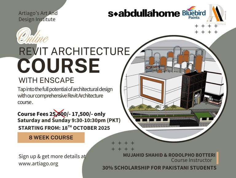 Artiago’s Online Art and Design Institute is thrilled to announce the launch of our online Drafting and Rendering courses, starting at just PKR 10,500/month. Learn directly from US-based architectural designers and practitioners, and gain hands-on skills to elevate your design journey — all from the comfort of your home.