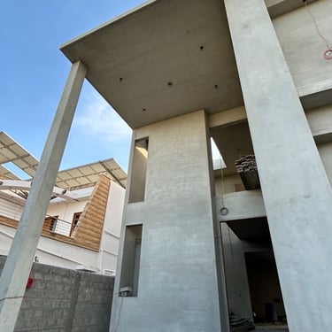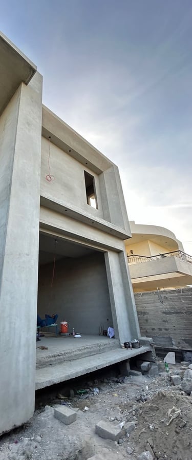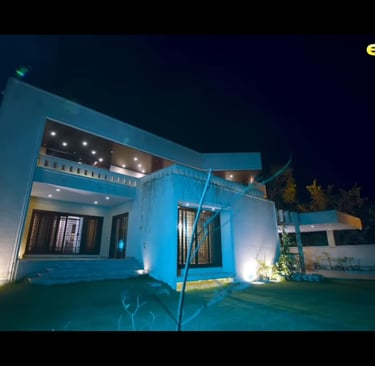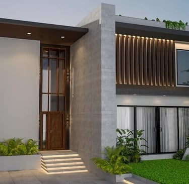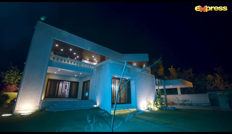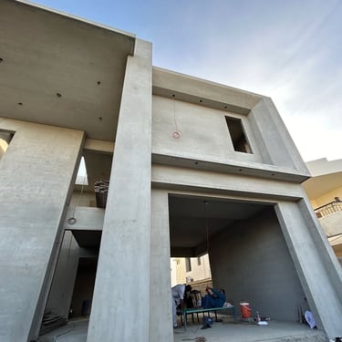 This contemporary 8,000 sq. ft. residence, located in the heart of Karachi, was designed to balance modern living with traditional family values. The house features a minimalist façade, emphasizing clean lines, geometric forms, and a dynamic interplay of light and shadow.