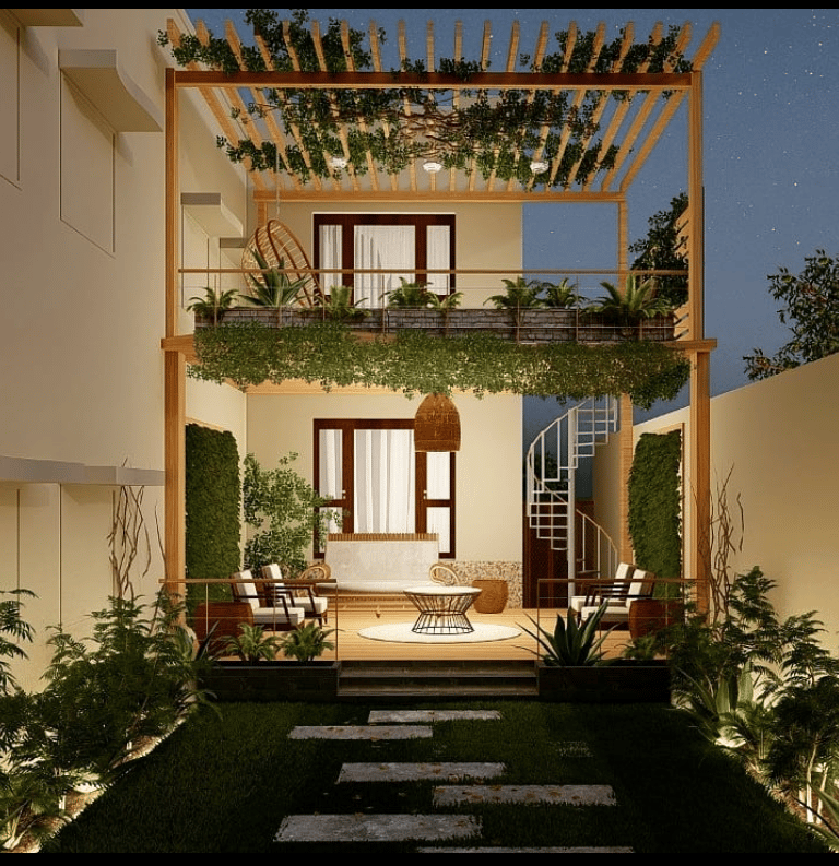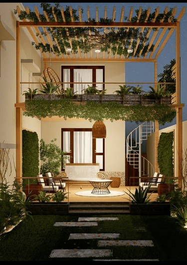 Indoor-Outdoor Harmony: A thoughtful design ensures a seamless transition between the cozy interiors and the open, greenery-filled outdoor seating area.